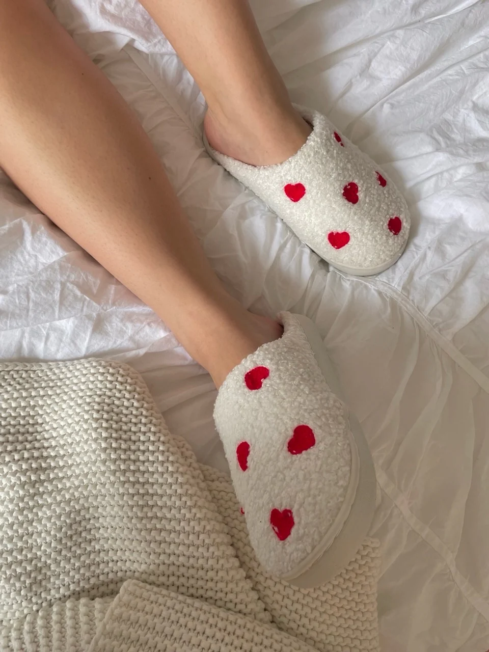 Pantoufles coeurs brodés